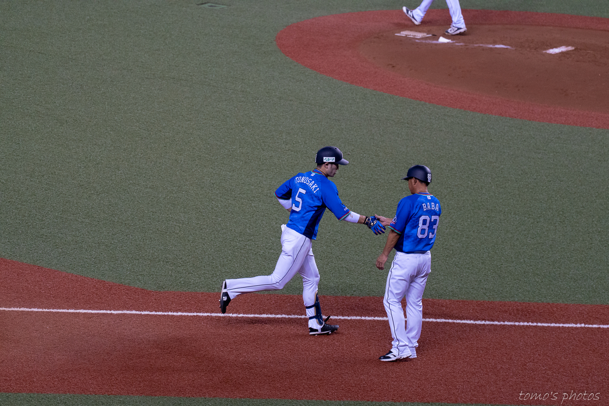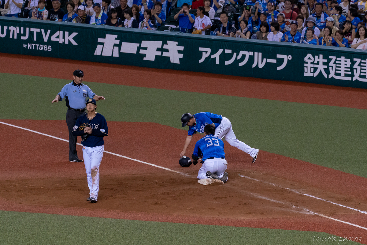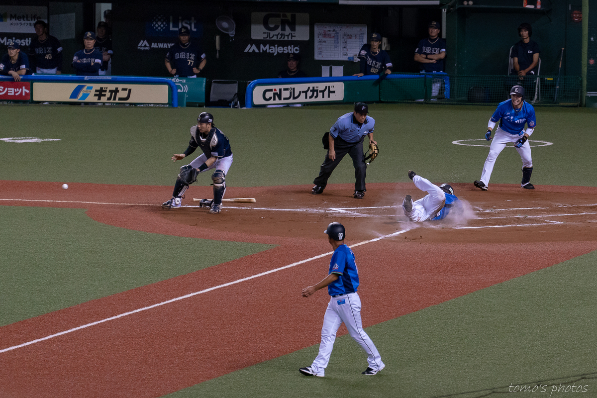 続く山川もサードゴロでダブルプレー阻止でヘッドスライディング。ヘッドスライディングは怪我しやすいので避けるべきプレーだと思いますが勢いが付きますね。